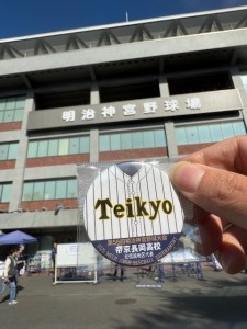 そうそう、帝京高校は売り切れだった、このバッチは区別がつくが、ユニ型のキーフォルダーはそっくりなんだろう、と思う。